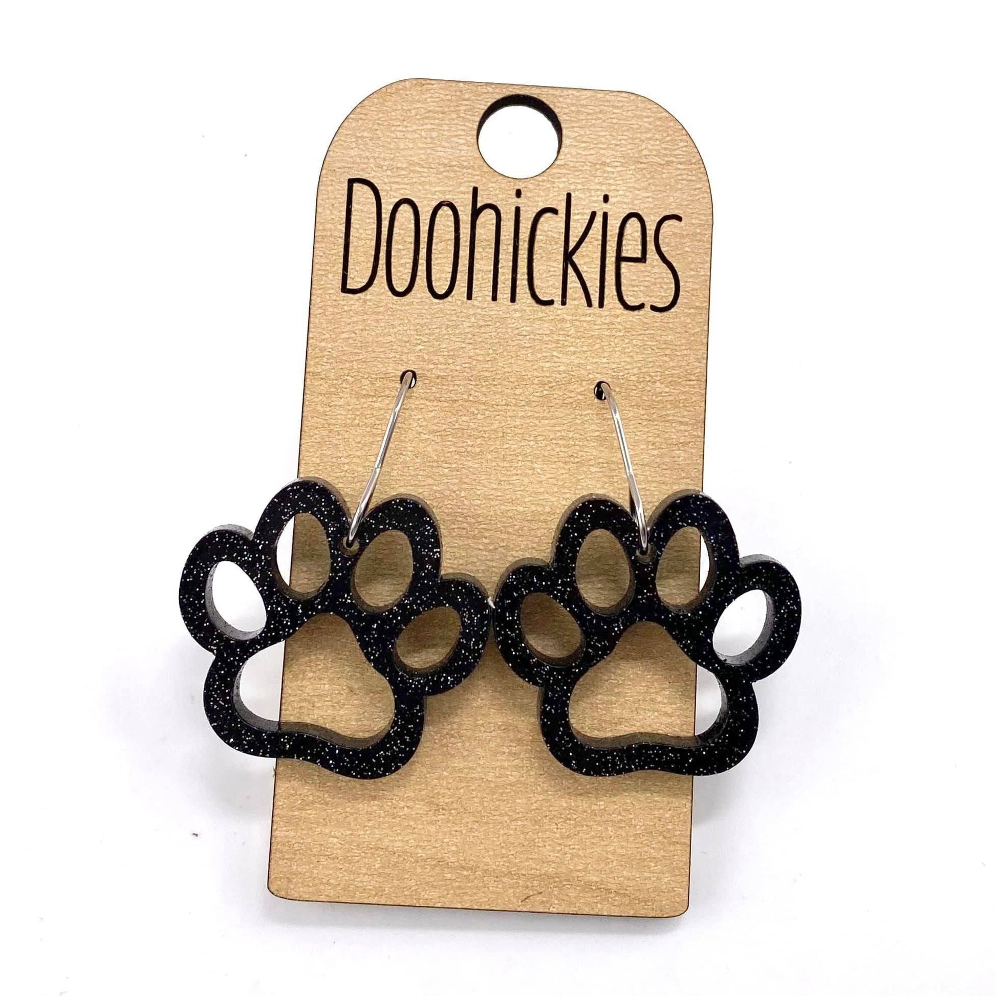 These playful 1" Glitter Paw Dangles are perfect add a touch of sparkle to any outfit. Dimensions: 1" x 1" Settings Type: Hypoallergenic & Stainless Steel** All settings are lead and nickel free** Materials: Acrylic Ship Time: Please allow up to 10 business days to ship. Lightweight Our earrings are HANDMADE by us in our shop in North Texas.We do not recommend wearing our product in water.